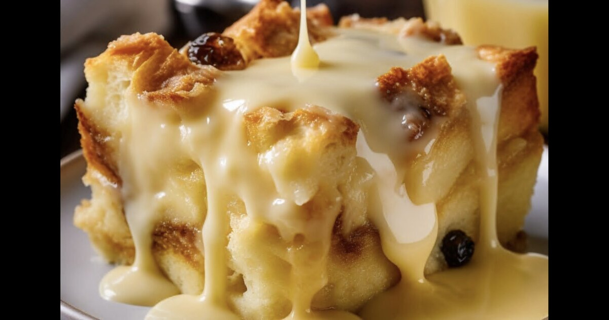 Old Fashioned Bread Pudding with Vanilla Sauce