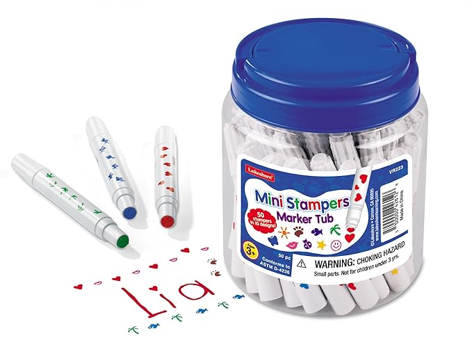 I was suddenly cross-legged on the carpet, imitating stamping pink faces on scraps of paper, and likely to be all sticky and glittery. Those markers got used up quickly, tips and all, and we still loved them. Overstuffing them into the paper was part of the fun.