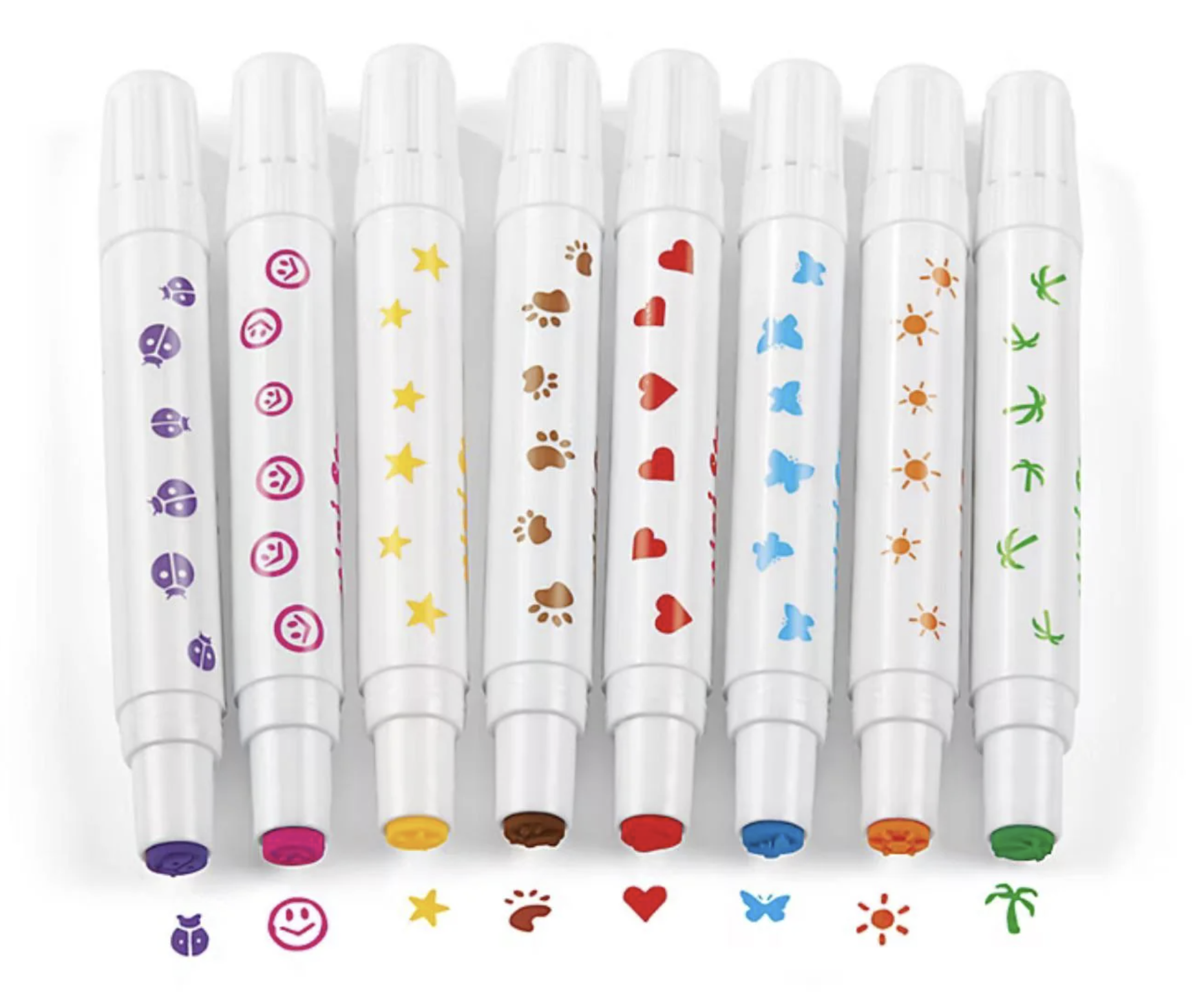 Then I found it. A photograph of stamp markers for kids. There it was — the same pink smiley face stamp tip I had discovered. One of those chunky white markers with tips shaped like various things — ladybugs, hearts, stars. No kid’s craft set was without these.