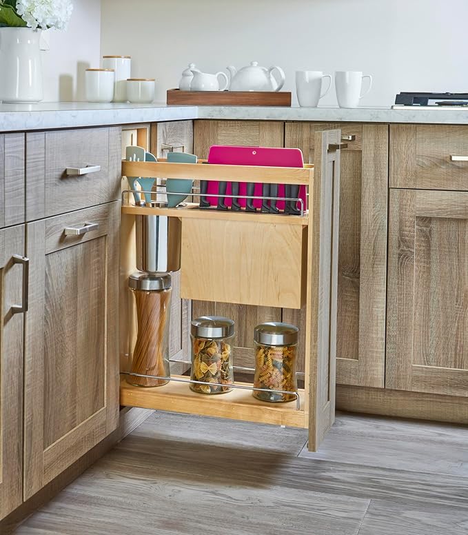 Another reason for the appeal of a pull-out knife organizer is that it is designed to remain hidden from view, until needed. When you do need to access something, you can easily slide it open, retrieve what you need, and then slide it back out of the way.