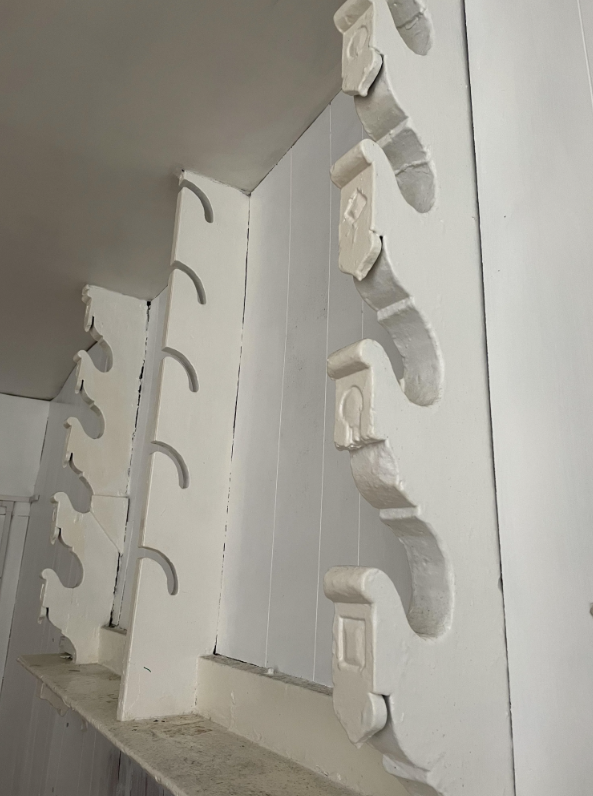 The spit rack represents a time when kitchen life revolved around hearty meals that brought families together. Roasts were not just dinner; they were community affairs, often involving neighbors and extended family. The range of spits displayed in this rack would have catered to various gatherings, from intimate family dinners to festive celebrations, reflecting a period when culinary customs were tied closely to communal bonds and seasonal events.