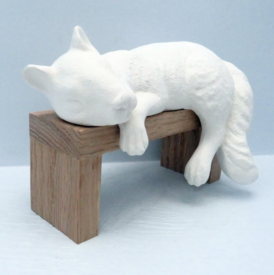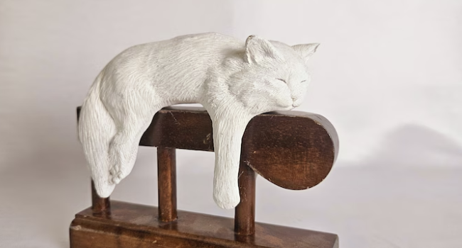 There is one such item that will almost always trigger that memory for many people and that is the vintage ceramic white sleeping cat statue on a wooden rail. If you were born in the 50s, 60s, 70s or 80s you may have noticed such items placed on the mantle or a side table. It was not only about the appearance; these personagens looked like they are soothing and in harmony with the world which was slower in those days.