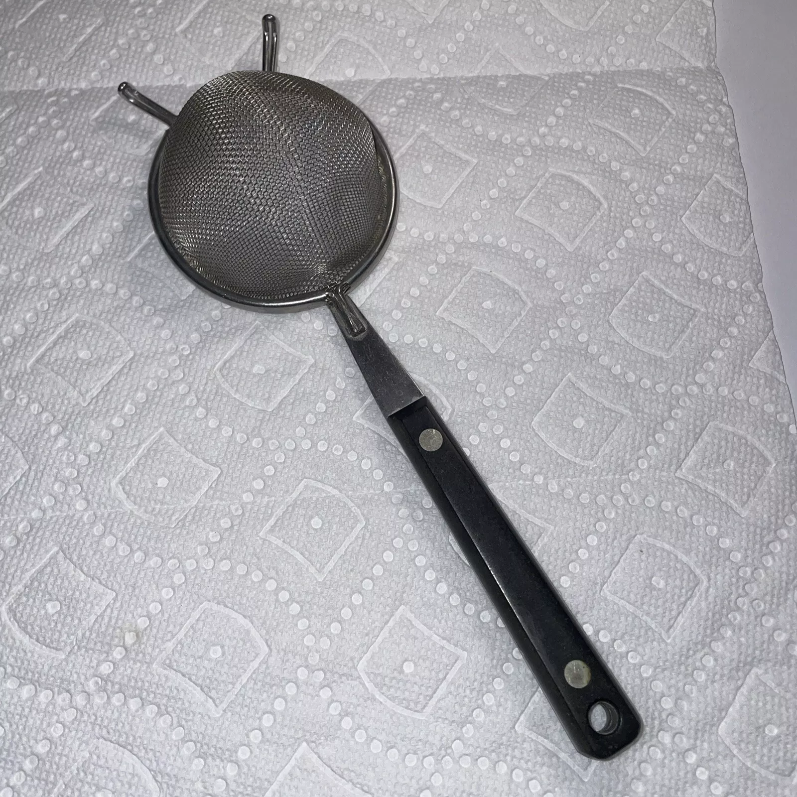 In the 50s and 60s, when homemaker’s made their own meals, the EKCO Flint strainer was an essential tool in every kitchen. It was used for washing berries, sieving homemade chicken stock, or dusting off doughnuts before frying them. I can still remember my grandmother using hers, the handles of which were polished by constant use but the knife was as reliable as ever. You could feel that the handle was well made and the mesh was quite close knit so that it could trap even the most delicate seeds. It was one of those items that just functioned, and functioned well, for years and years.