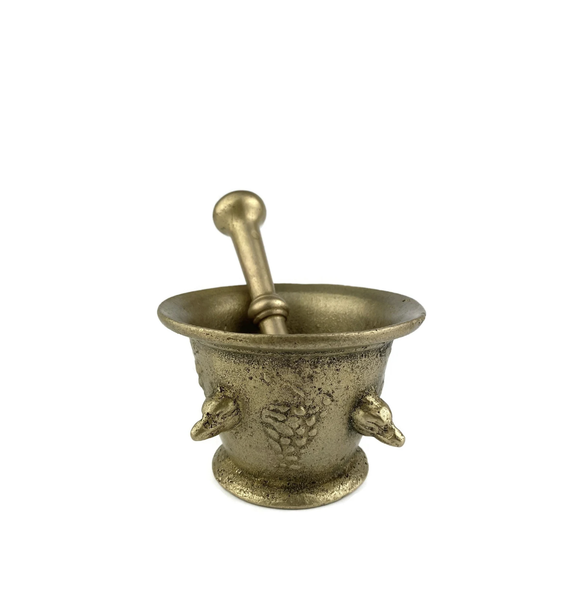 The one you’ve found, with its hefty cast iron design and classic cylindrical shape, is likely quite old, possibly dating back to the 19th or early 20th century. Cast iron versions like this were prized for their durability and weight, making them ideal for heavy-duty grinding tasks, whether in a kitchen, pharmacy, or even for industrial purposes. The thick iron pestle was perfect for crushing tougher materials, while the bowl’s deep structure ensured that nothing would spill out during use.
