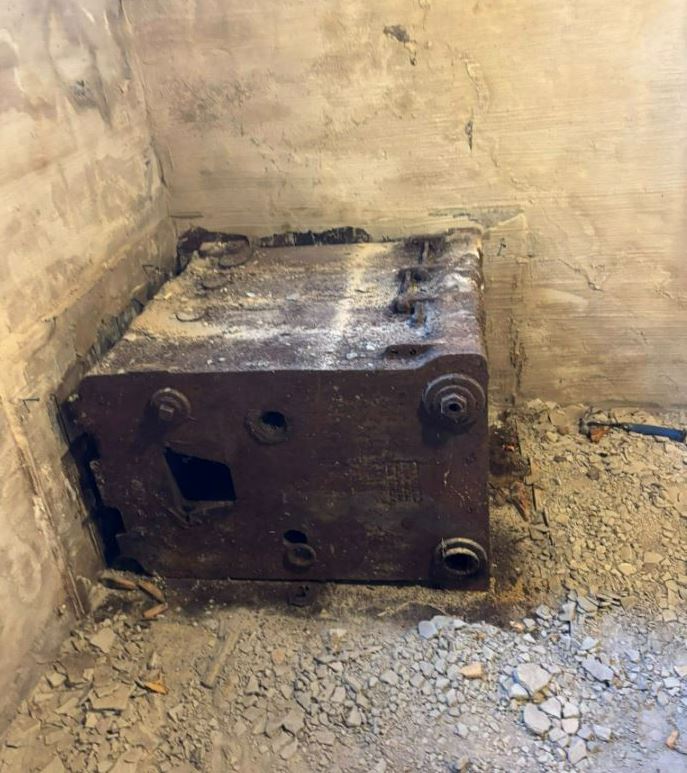 This one, in particular, was so heavy it took five grown men just to shimmy the thing six inches one way or the other. Officials estimate its weight at roughly 2,500 pounds — a testament to how overbuilt that old stuff was made to be.