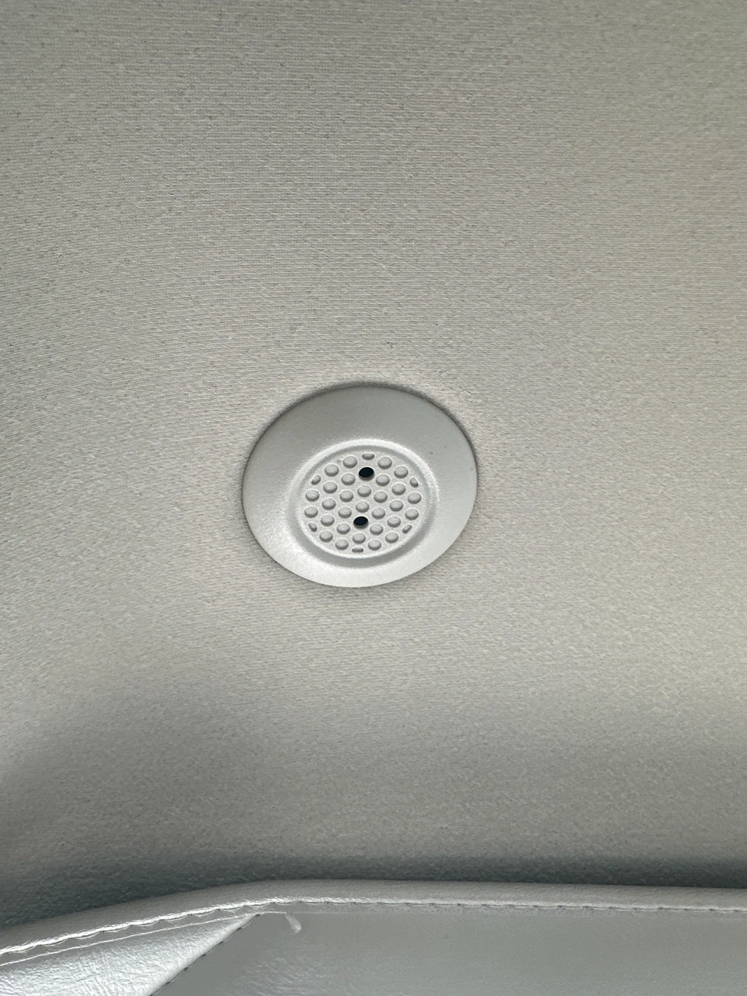 The round object with two holes above the driver’s seat in your U-Haul is a Light Neutral Mobile Telephone Microphone Bezel, commonly found in older vehicle models. This device is part of the communication system used for hands-free mobile calling. The two small holes serve as microphones that pick up the driver’s voice, which is then transmitted to the vehicle’s onboard telephone system, allowing for safe, hands-free communication while driving.