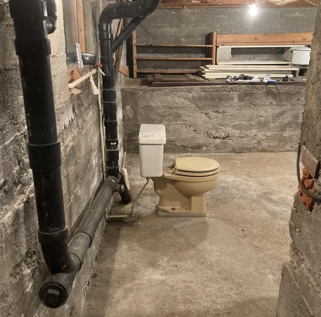 When indoor plumbing became more widespread and people began to live in different ways, the demand for basement toilets decreased. Many of the original basement toilets were either removed from the basement, capped off, or remained unused. Today, few remain visible. Those that do are a cast iron pipe with bolt holes drilled into the cracked concrete — an indication of how homes were previously built for functionality rather than aesthetics.