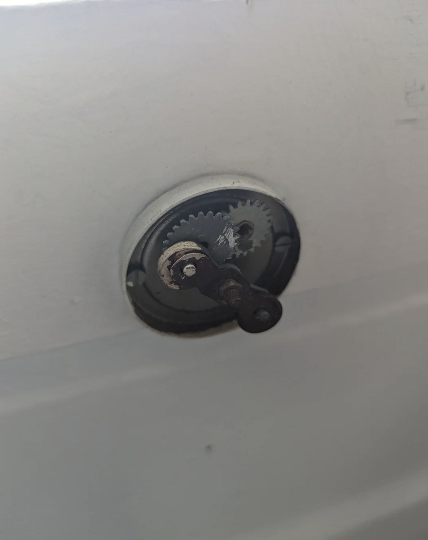 A vintage twist doorbell was, in effect, a bell that had no wiring, and didn’t require electricity. This was started by a visitor twisting the external crank. The crank turned the gear mechanism inside the door. The gears turned a hammer mechanism that struck a ferrule metal dome, to ring “ding-ding.” As long as you didn’t break the hammer, gear, or dome by twisting them carelessly, it would continue to function just fine.