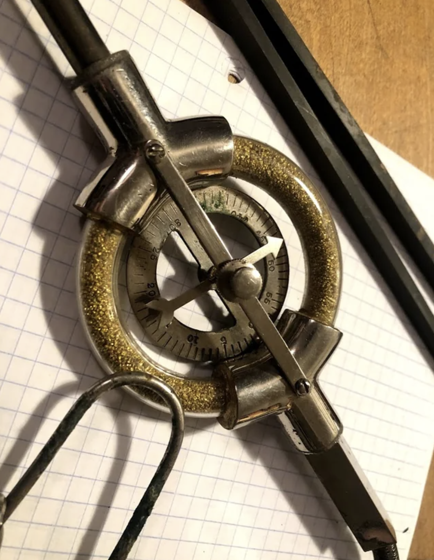 The Spanish dip needle has a magnetized needle that swings vertically, along with a circular housing. The housing will often have degree marks that offer information on the steepness of the needle’s dip, aiding in the location of magnetic materials. This is an indicator of where magnetic materials could be located within the layers of strata beneath the surface.