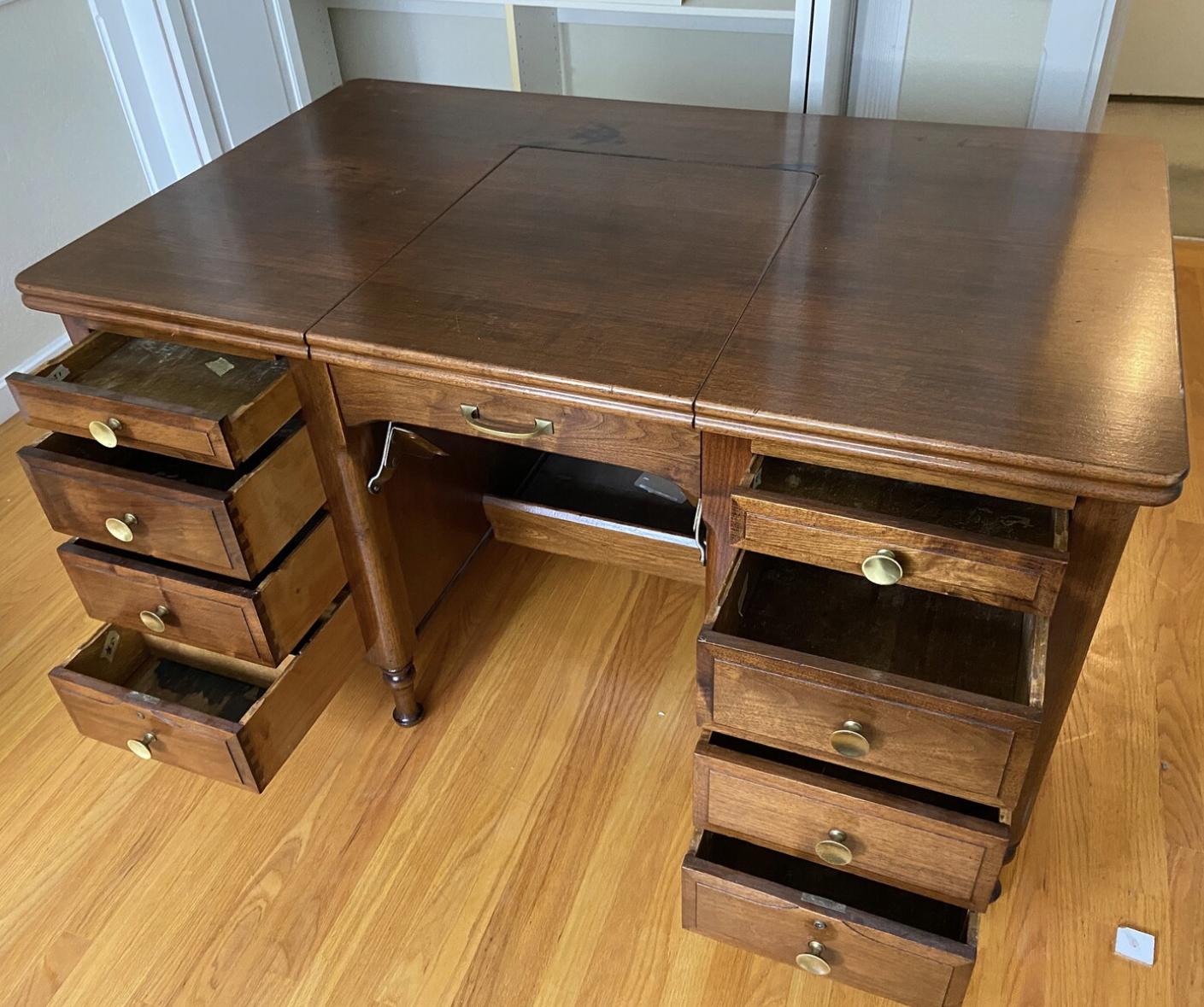 The desk was not just a place to write. Makers designed it for usefulness, durability, and adaptability. They built the desks to support heavy typewriters while still providing enough space for writing and clerical work. These two needs conspire in a way which creates an efficiency in using desks which very few of our modern desks afford.