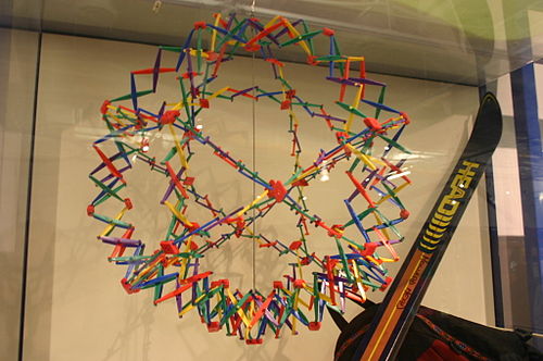 Toys such as the Hoberman Sphere depend upon their connections. Each small connector has a role. In fact, even this small red piece has an exact shape because it needed to provide support to connect other pieces together and permit motion at the same time.