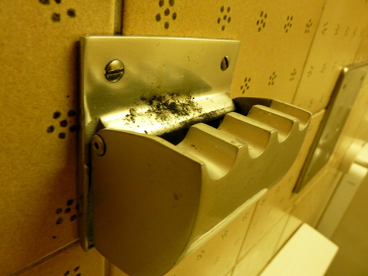 I just stared at it. One of those “wait, is this what I think it is?” moments. These things are a blast from the past. A grimy little time capsule of when people could smoke everywhere. Bathrooms, planes, offices, elevators.