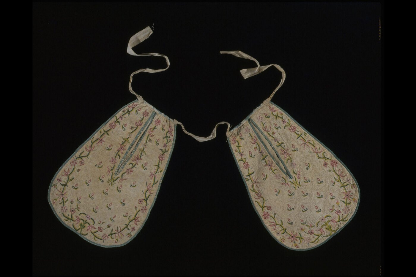 Pockets were located between layers of clothing that hid them from view. A slit was cut in the top layer to allow the woman to insert her hand through the slit. Women’s hidden pockets allowed them to access what they needed from the hidden pocket. This 18th-century lady’s pocket was made of crochet and beading. It has a floral pattern on the front along with a slit in the middle which allowed access to the contents.