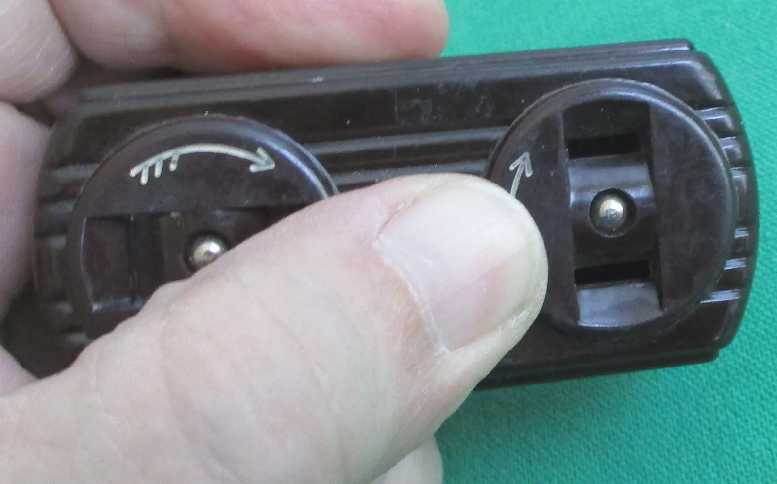 The one I found in my headboard was a great example. It had two little dials that you could twist to plug something in securely. And while the cord was long gone (probably cut for safety reasons), you could still imagine how it might have worked.