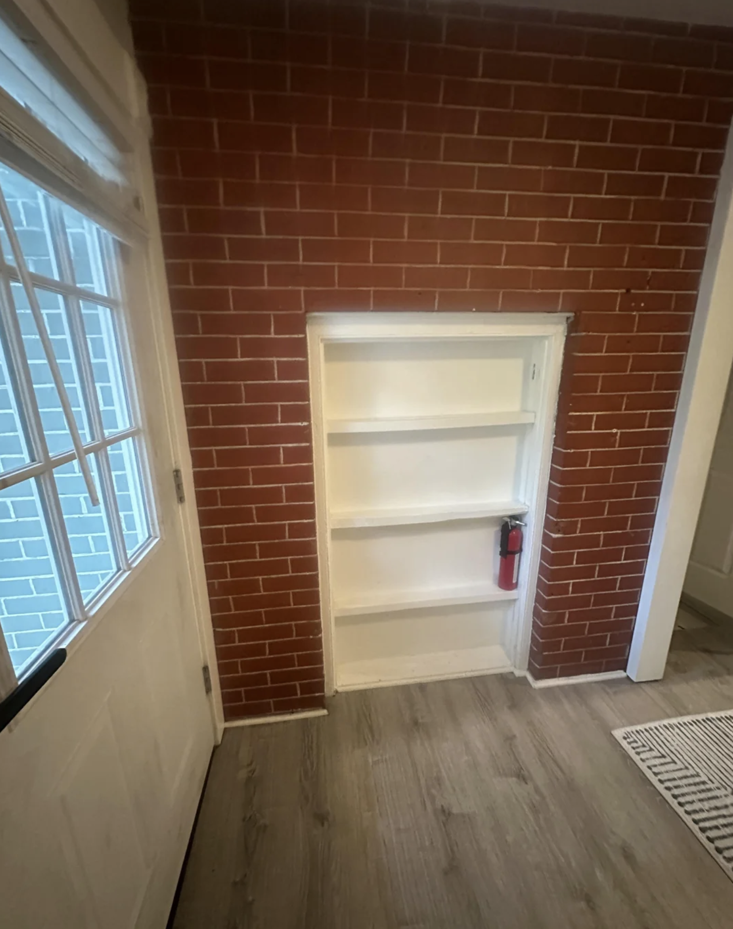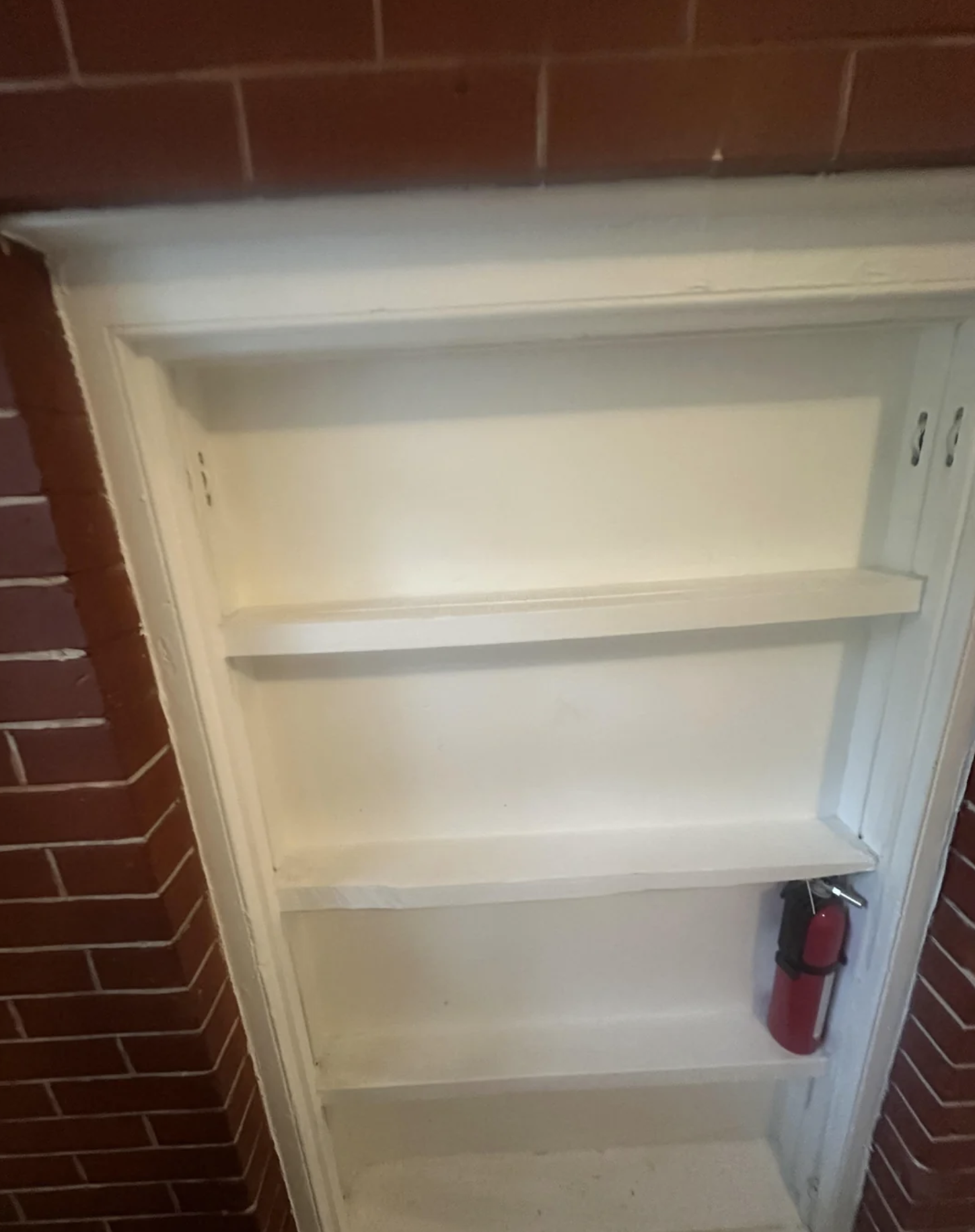 I was checking out one of those built in shelves that a friend of mine had. Just a little shallow cutout in the wall, white painted, framed like a piece of bookcase. And there they were. Two small metal wheels at the top corners. Just lying there.