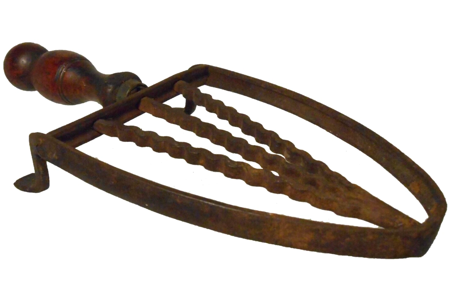 Good news: it’s not a weapon. It’s not a farming tool. It’s a sad iron rest with chains, and it’s a nice example of practical history.
